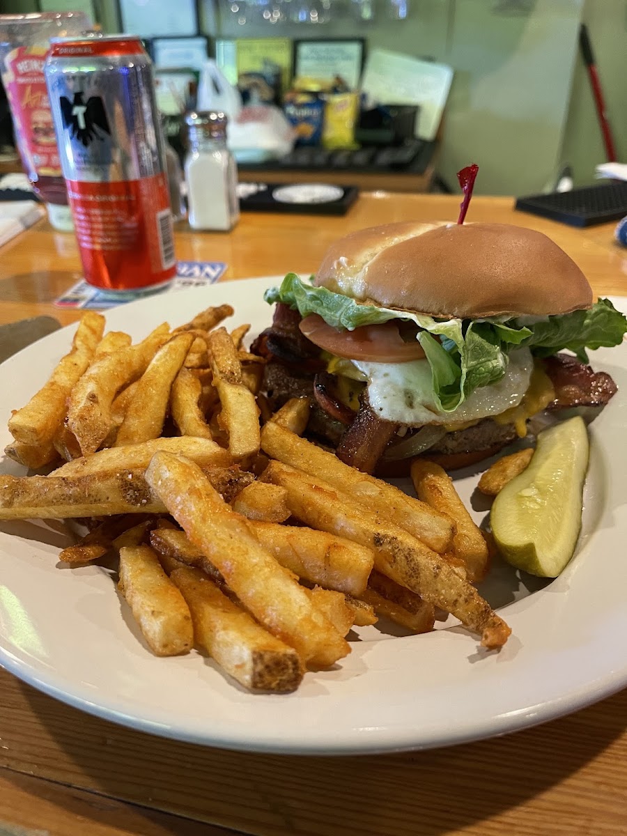 I’ve only been here during daytime so I don’t know much about the atmosphere since I’m usually there to pick up or there’s a couple patrons in the bar when I am eating. The food is great and the staff is friendly. The bar has been remodeled and looks great compared to what it used to look like. The soul burger is my favorite item.